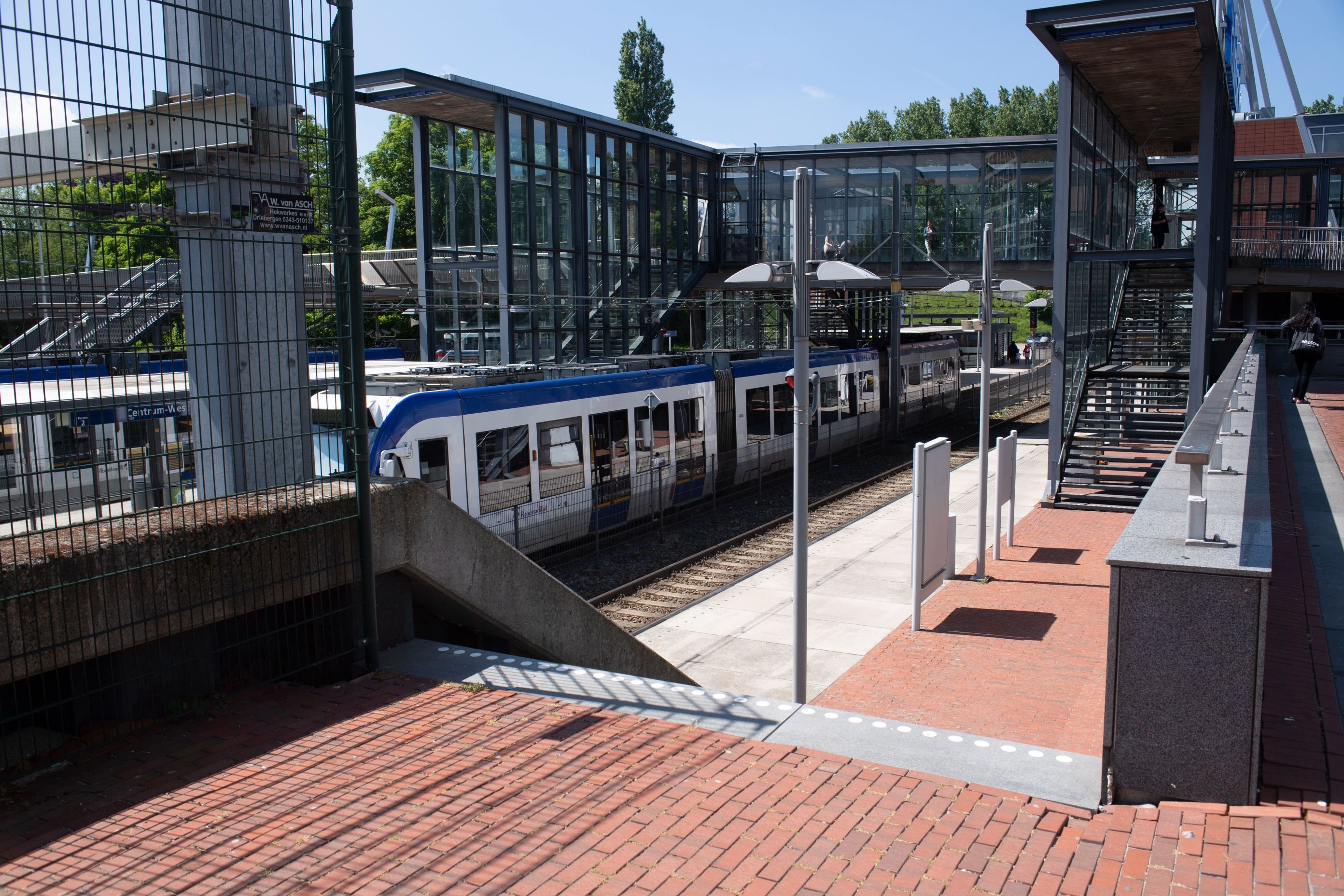 - Bij het overstappen van tram naar tram zijn er twee trappen. Het is onduidelijk of daar een waarschuwingstegel nodig is.